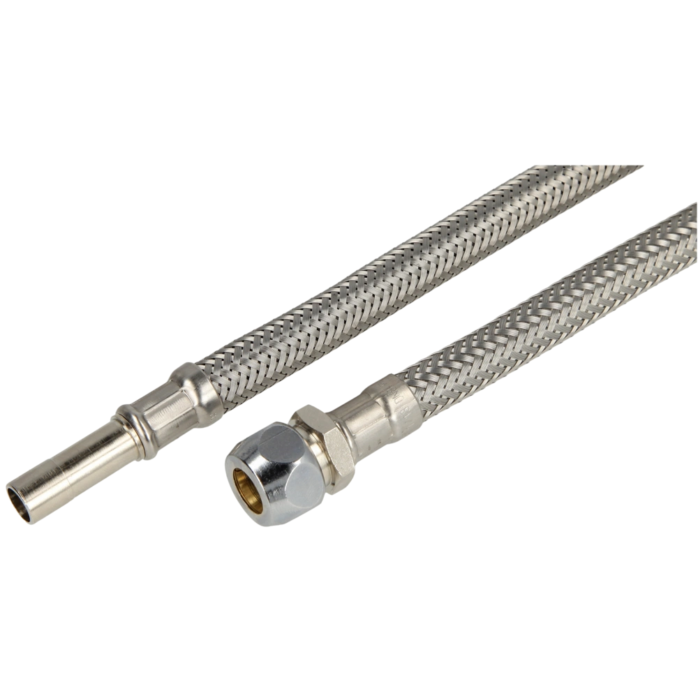 The thermoplastic hose with a non-twisting compression fitting is used for connections in the sanitary and drinking water sector. This reinforced hose is perfectly suitable for tap water in both warm- and cold-water connections as well as washing machines, dishwashers, tap connections, water softeners and many other sanitary applications.