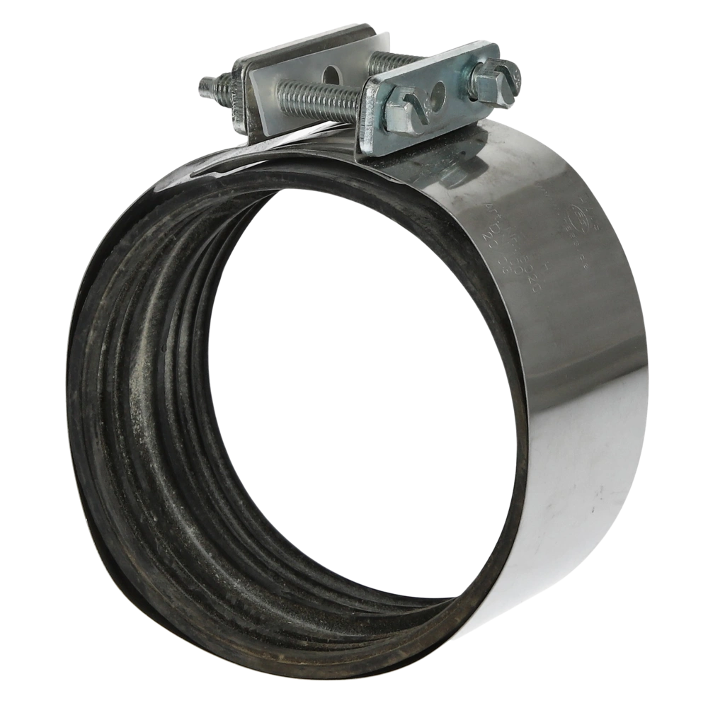 All product informationSealing clamp made of V2A stainless steel with EPDM sealing surface for the sealing of holes, cracks and porous areas in water-carrying pipes. The clamp can be used for pipes made of steel, copper, stainless steel, fibre cement and cast iron as well as for ductile cast-iron pipes and heating pipes. It is also suitable for the short-term repair of PE and PVC pipes that carry cold water.