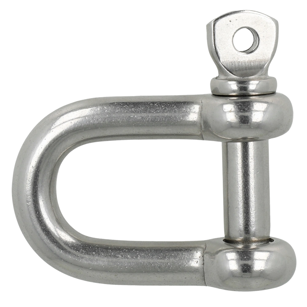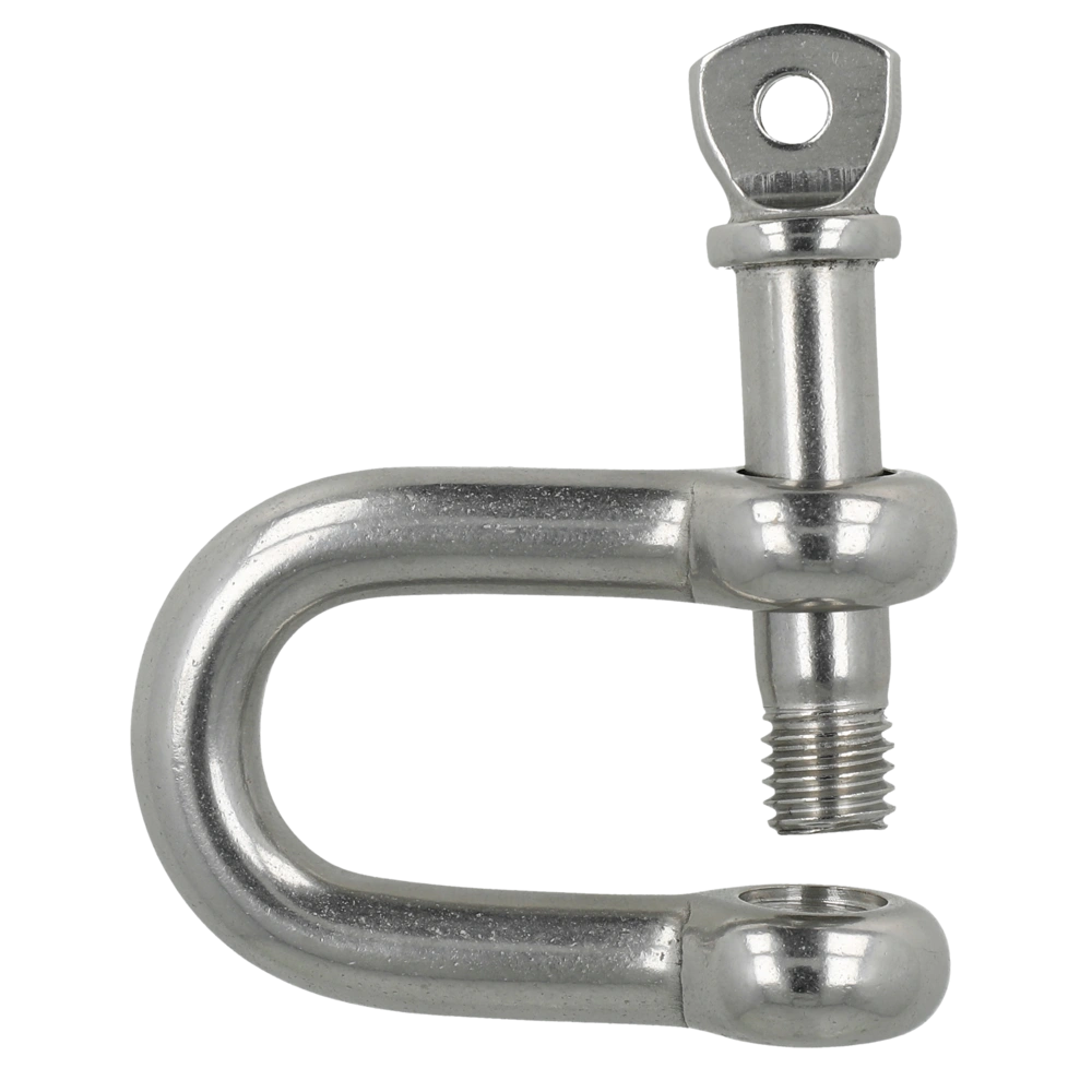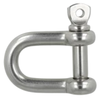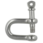 Stainless steel shackle with screw bolt. The bolt can be secured through the bolt eye with wire or cable tie to prevent unintentional loosening.