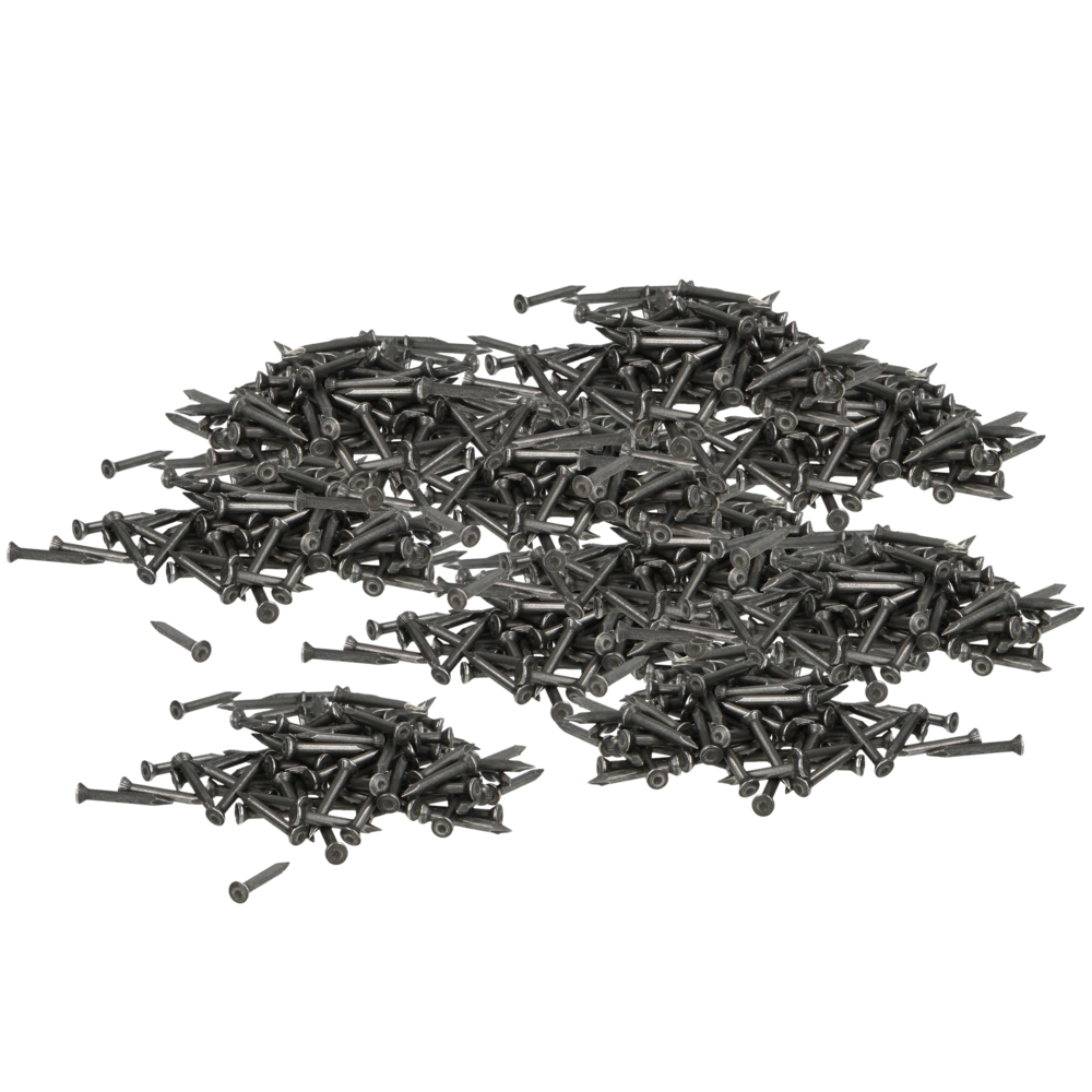 Hardened and galvanised chromated steel nails.