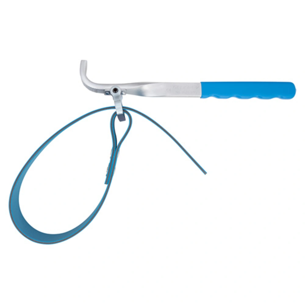 All product informationStrap wrench for tightening and loosening workpieces with large diameters. Ideal for the change of oil filters or the installation of flanged expansion vessels. The handle is made of chrome-plated steel, the extra-wide, non-slip fabric tape ensures a good hold and best force transmission.