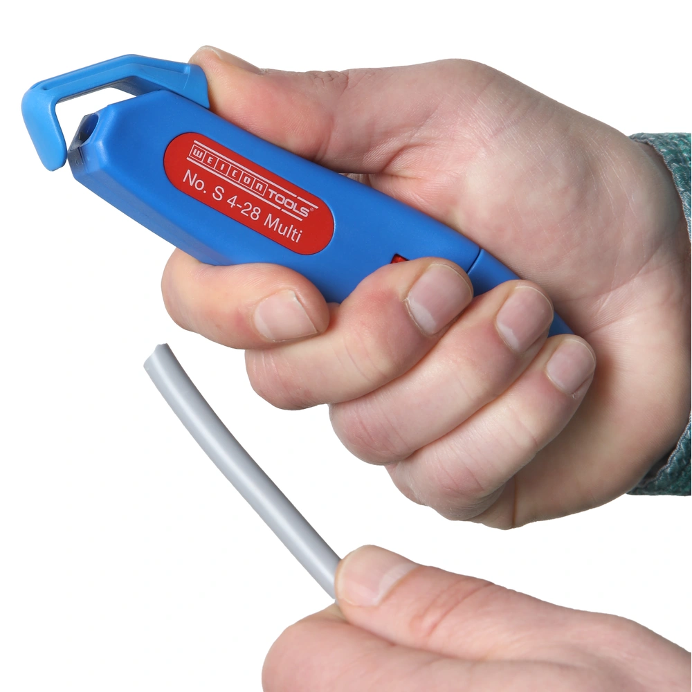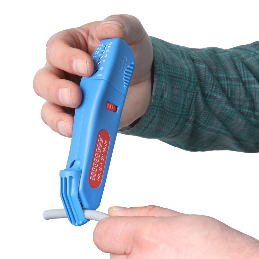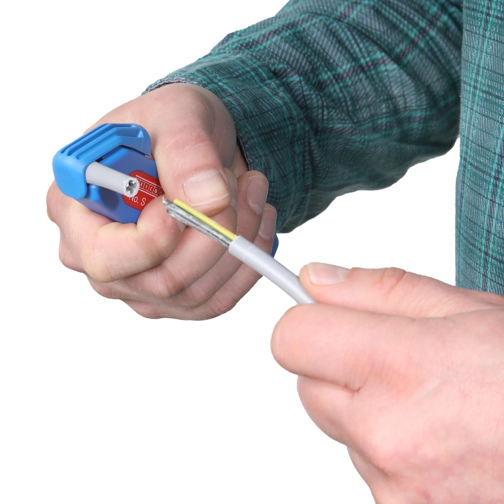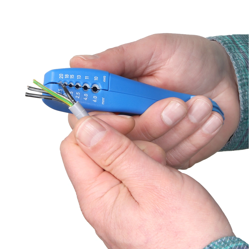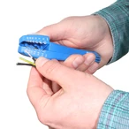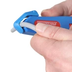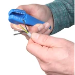Fully insulated stripping toolT for all standard cables. The cutting depth can be easily modified via thumb wheel. The self-rotating blade allows for the change from round to longitudinal cuts of the outer insulation...