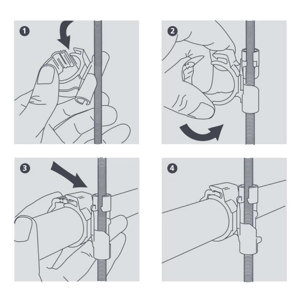 All product informationPipe holder for the secure fixing of cables and pipework between suspended ceilings.