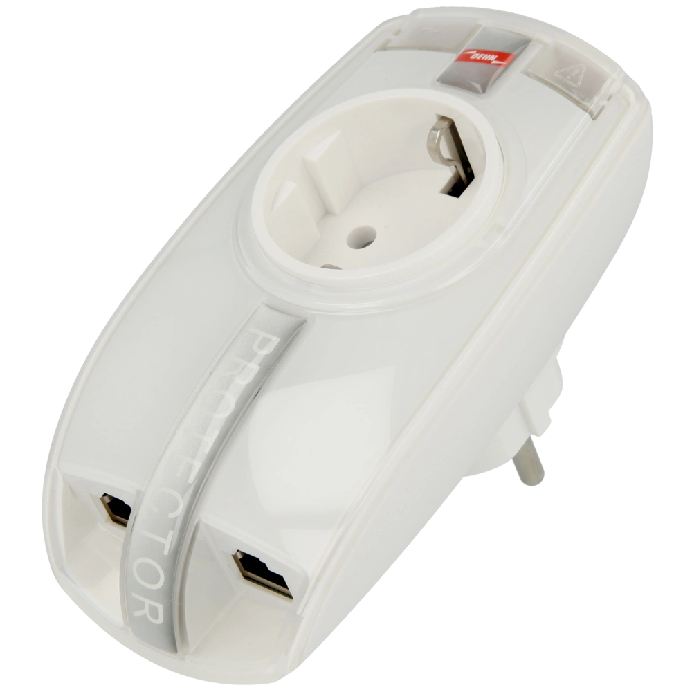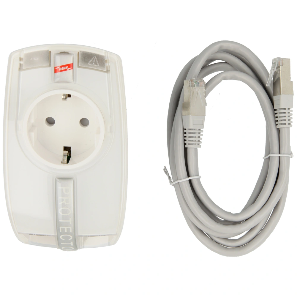 Surge protective adapter with integrated monitoring device for protecting electronic devices connected in the Ethernet network with up to 1 GB Ethernet. With the combi adapter, the energy and data side...