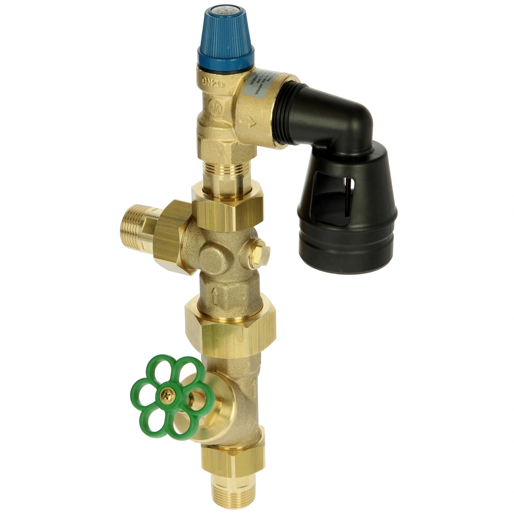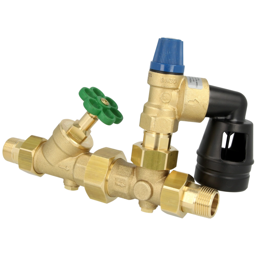 The tank safety group checks and limits the pressure in water heaters and prevents the hot water from returning into the system. Installation is carried out at the tapping point or when boilers are wall-hung above washbasin/shower/bathtub mixers at the bottom part of the housing.