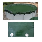 Tarp kit for above-ground pools. The tearproof reinforced tarp fabric has a green top and a black underside to prevent algae formation in the water. The steel rope is guided through the circumferential...