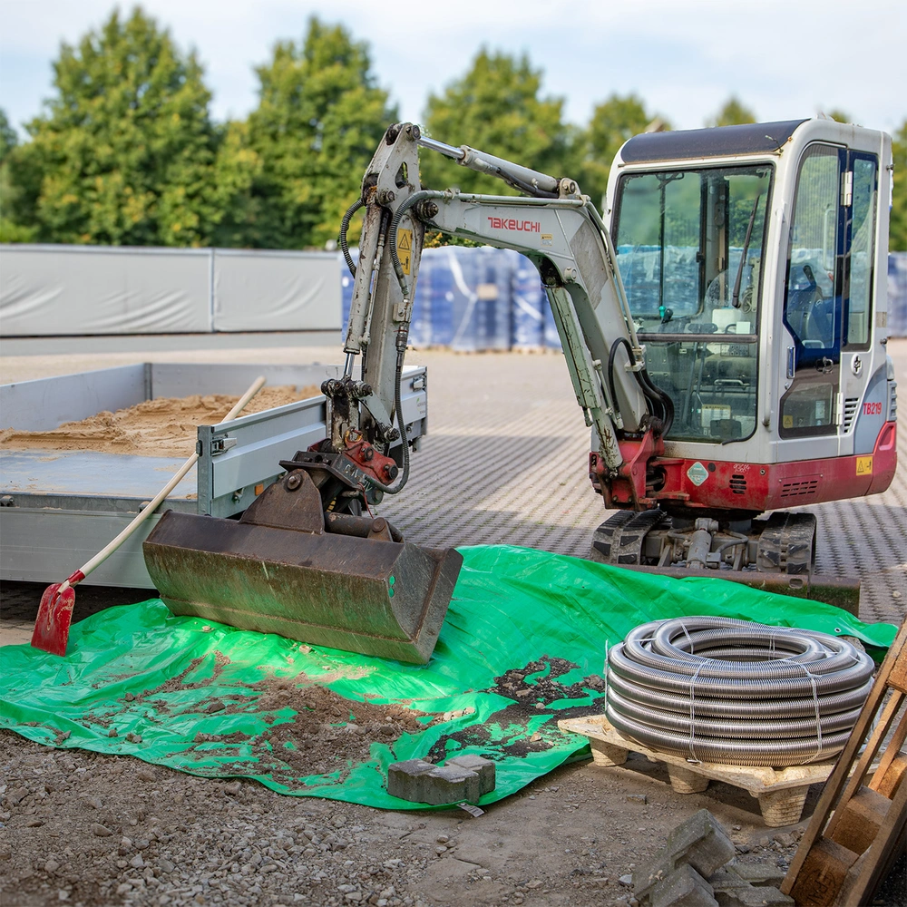 Tarpaulin made of tear-resistant, UV- and weather-resistant plastic fabric. The tarp has a reinforced hem and rustproof metal eyelets to fasten it firmly and securely.