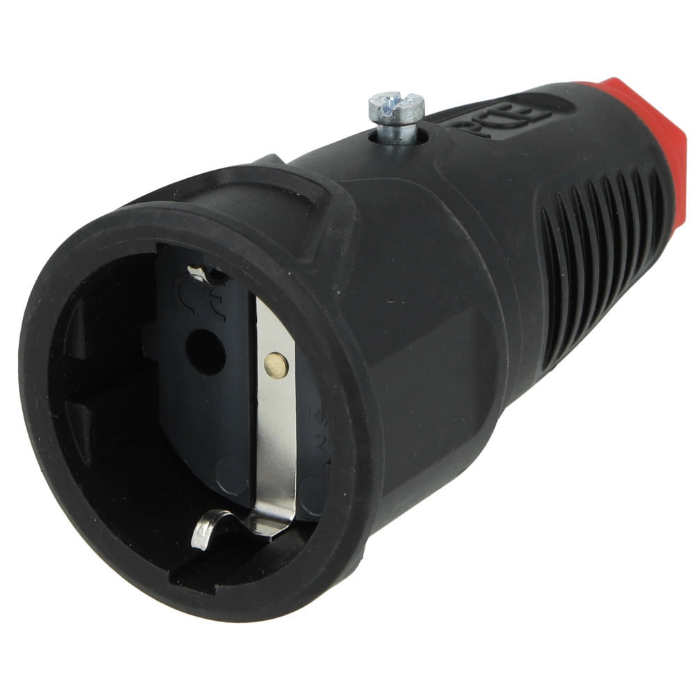 The robust safety connector made of solid rubber. Shock-resistant due to the material und equipped with a high-quality Schuko insert.