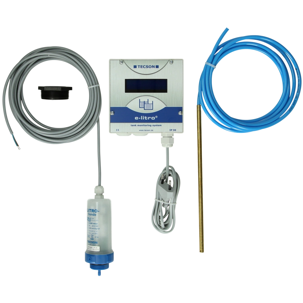 The e-litro consists of a pneumatically measuring probe, combined with a digital display device.