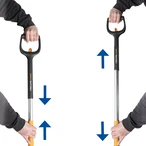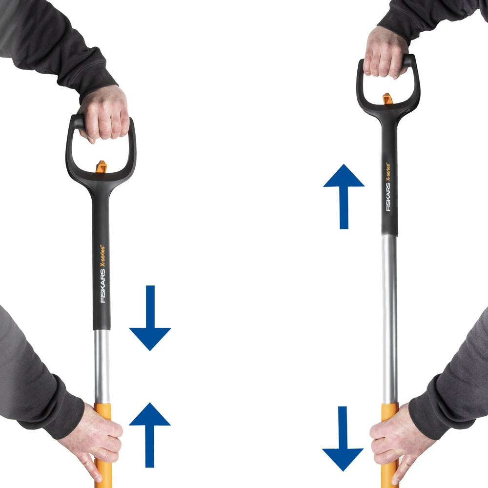 Lightweight and robust telescopic snow pusher with ergonomic handle. The special thing about it is the telescopic function. It can be used for adjusting the shaft and handle in the longitudinal axis...
