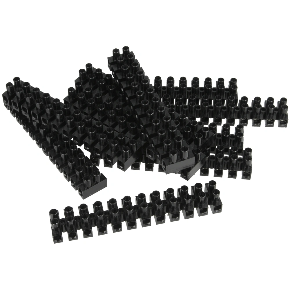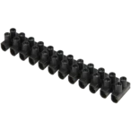 All product informationThe terminal strips without wire protection are equipped with twisted screws and clamping bolts. The housing is made of polyamide and self-extinguishing acc. to UL 94V2. The clamping bolts are made of nickel-plated brass, the screws are made of galvanised steel. The terminals can be cut to length individually.