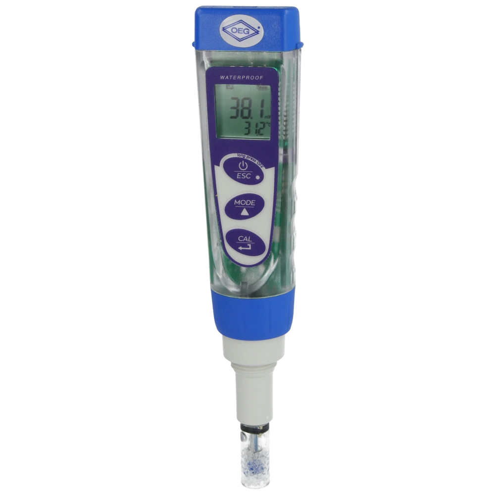 The OEG tester All-4-Six can measure the following values: pH-value, REDOX, conductivity, TDS, salt content and temperature. The large LC display is easy to read and shows all data at a glance...