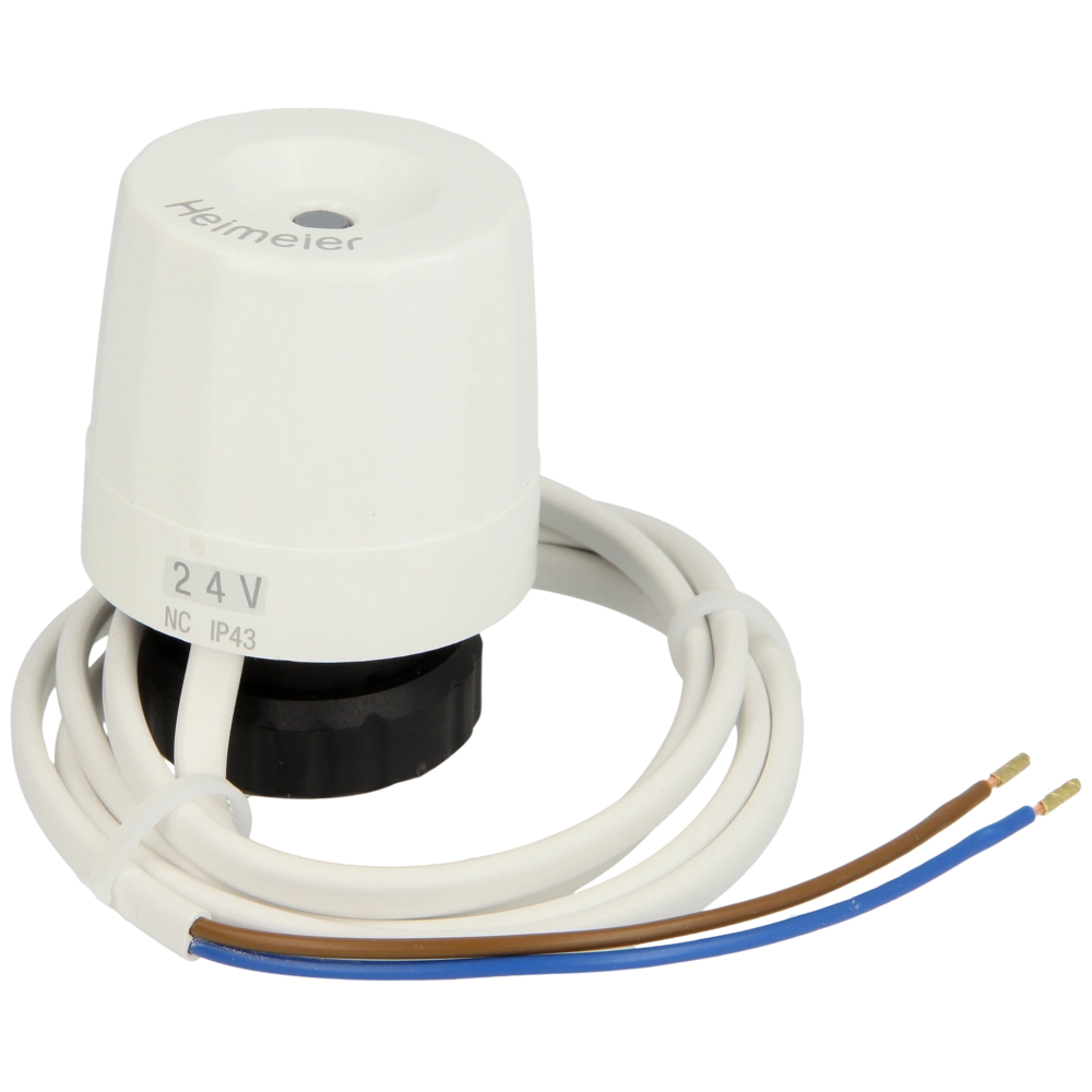 The thermal 2-point actuator EMOtec is suitable for temperature- and / or time-related 2-point regulation. It is fitted with a position indicator at the front. The actuator is closed when currentless (NC) and fits on all IMI Heimeier thermostatic valve bodies and three-way valves.