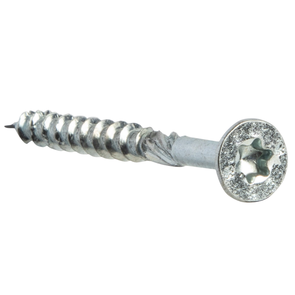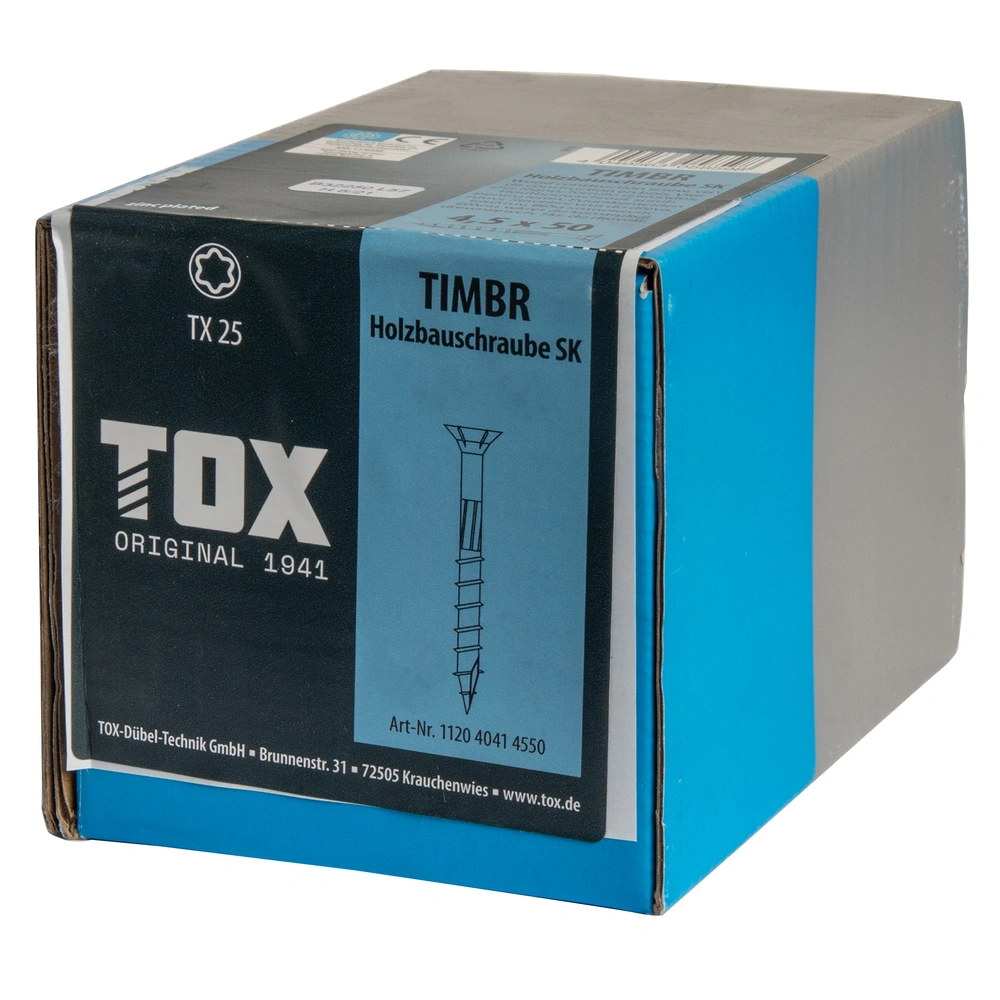 Timber construction screws made of carbon steel for joining wooden elements. The screws can be used for building carports and also for roof and load-bearing timber structures. Underhead milling ribs accelerate the countersinking, the cut notch reduces splittings in wood. The countersunk head enables a surface-flush installation.
