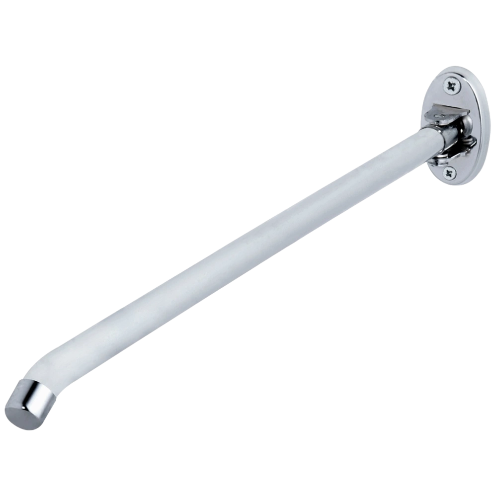 All product informationSingle-arm towel holder made of chrome-plated brass with oval rosette for wall mounting.