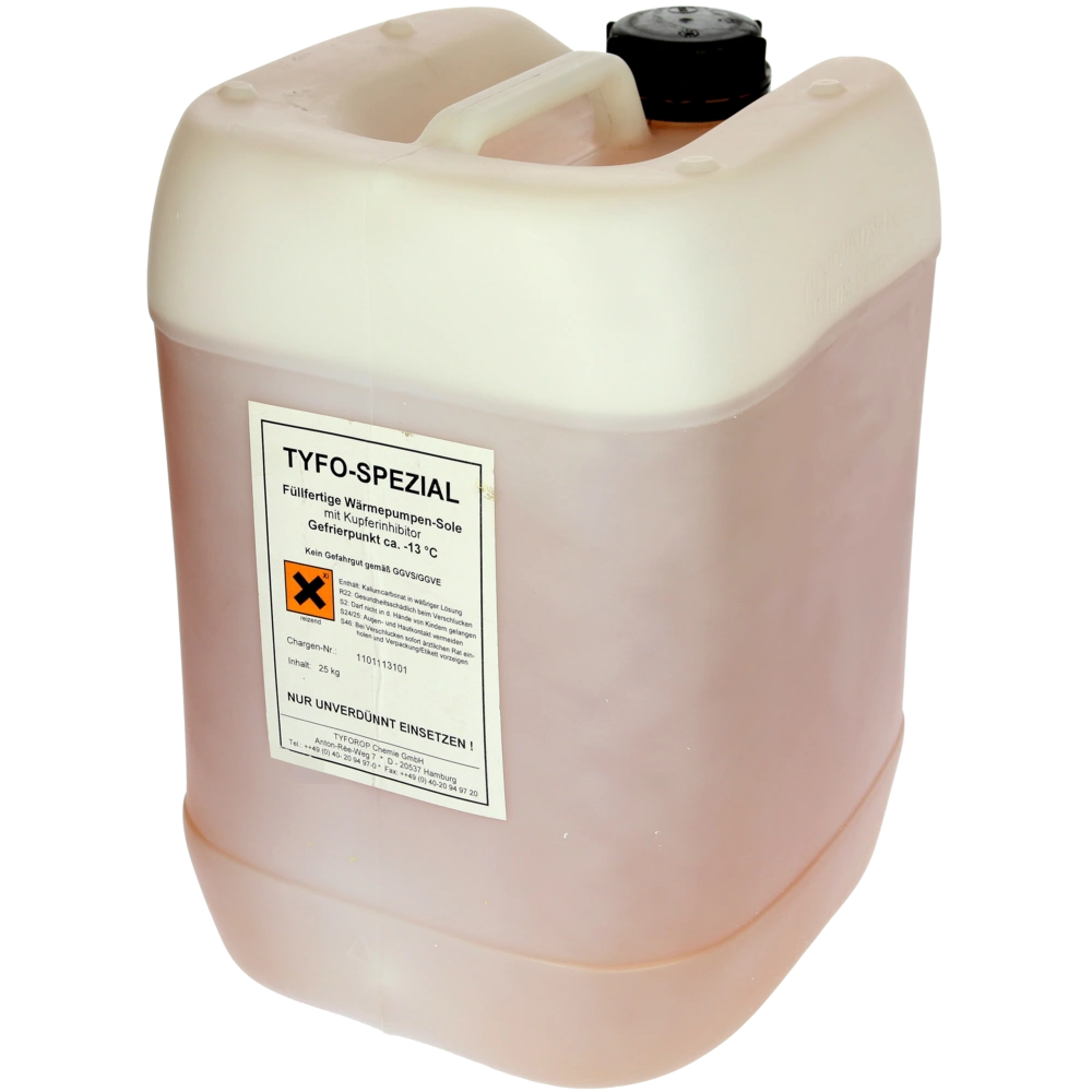 All product informationTYFO Spezial is a high-quality and high-performance brine based on salt. It hass been specially developed for geothermal heat pump systems. In the event of a leak, TYFO Spezial does not cause any underground biological oxygen depletion.
