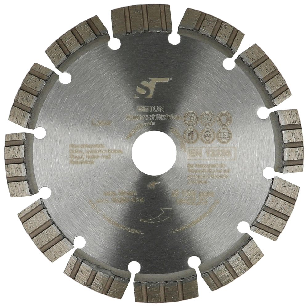 High-quality universal diamond cutting blade for daily use on construction sites in wet and dry cutting modes. The special turbo segments have a very low side friction and, thereby, provide for precise and fast cuts. The cutting blade is laser-welded to ensure a long life and maximum safety.