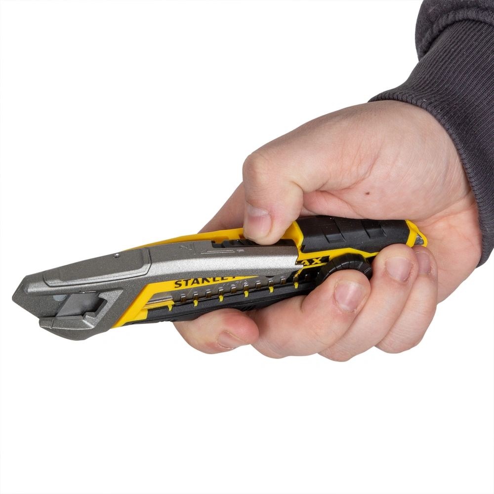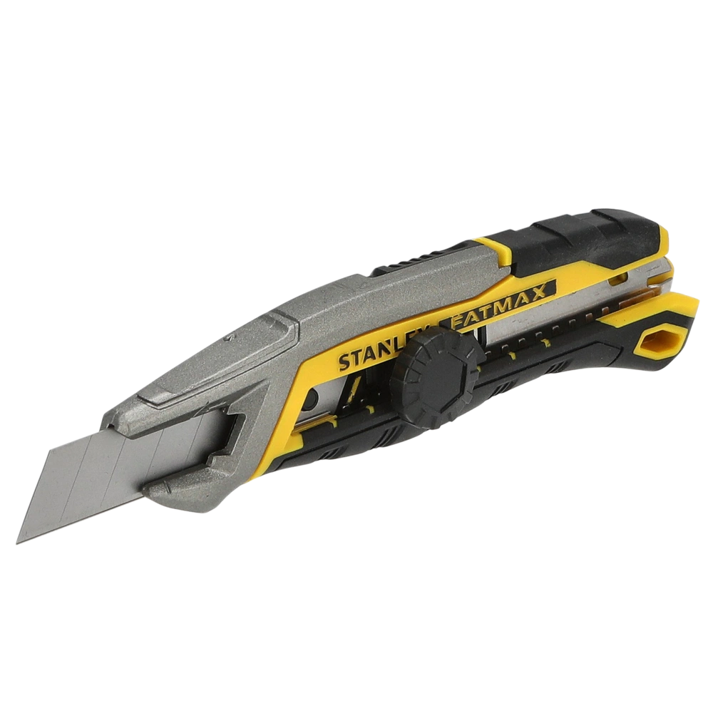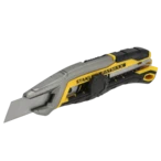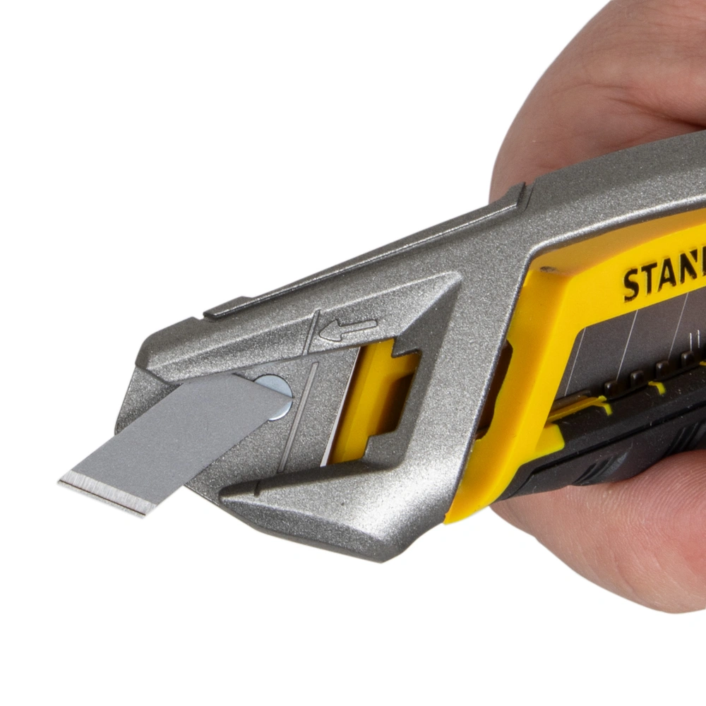Utility knife with integrated blade breaker to safely break off a blunt blade. The broken blade adheres magnetically to the tool to minimise the risk of injury.