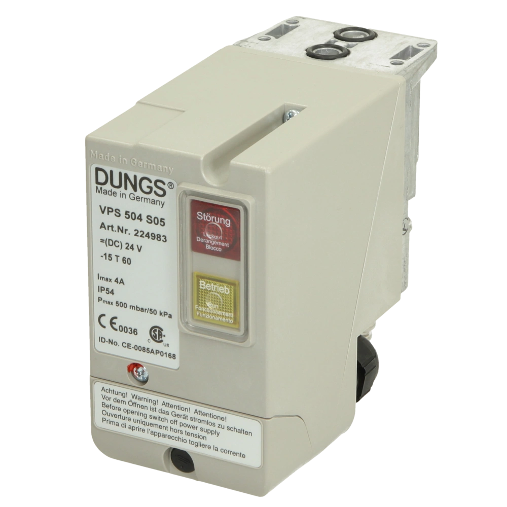 Valve proving system for automatic tightness testing of gas shut-off valves in industrial applications. Suitable for DUNGS valves of classes A and B in accordance with EN 161. The system works regardless of the inlet pressure, and tightness or leakage are clearly displayed by an LED on the device. Easy integration thanks to screw terminal connection.