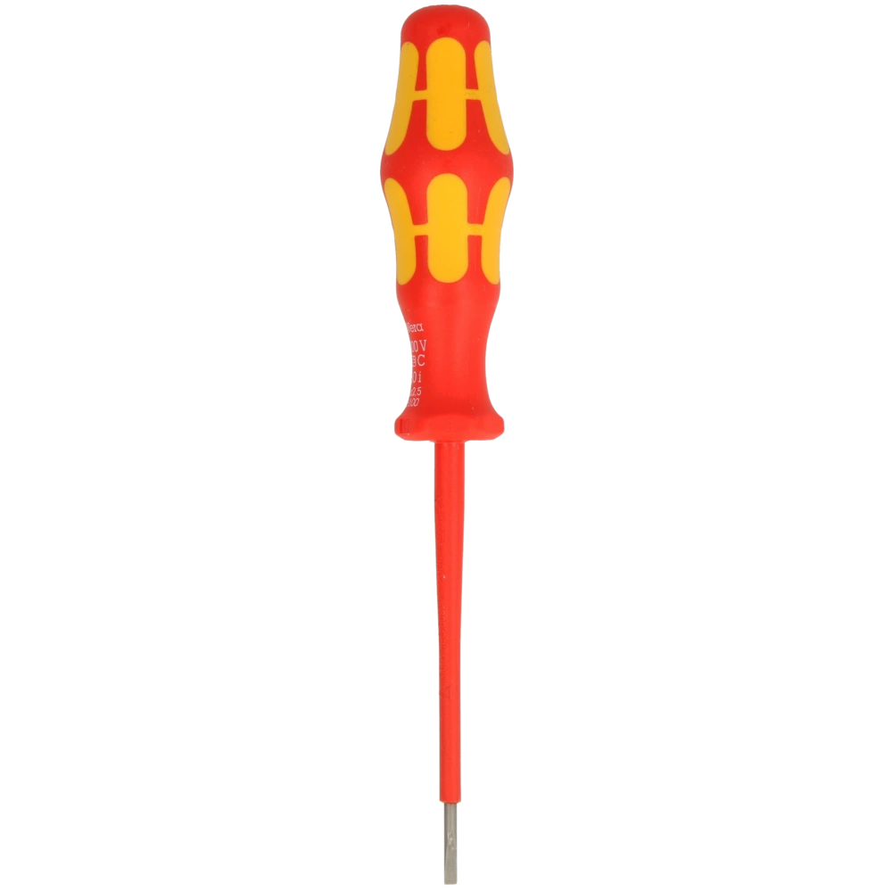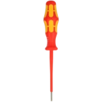 VDE insulated, unit-tested screwdriver for slotted screws for safe working up to 1,000 V in accordance with IEC 60900. The ergonomic Kraftform handle has hard zones for high working speeds and soft zones for an optimised torque transfer...
