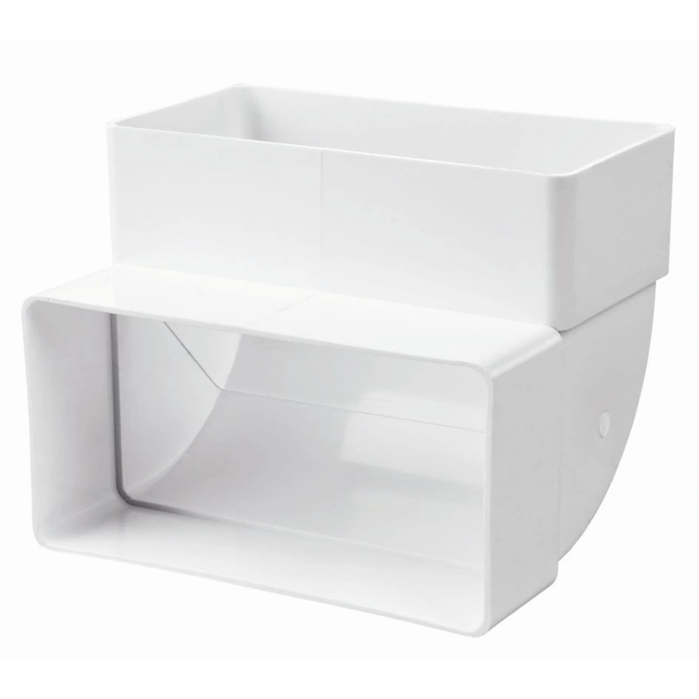 This elbow is suitable for connecting cooker hoods, ventilation hoods and other components to the ventilation system and enables the vertical connection of flat ducts.