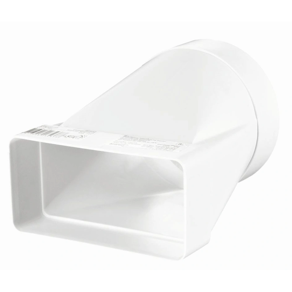 All product informationVentilation adapter for supply and extract air in residential buildings and offices. The adapter is suitable for connecting ventilation hoods, cooker hoods and other components to the ventilation system and enables the connection of flat ducts to round ducts. The smooth inner surface ensures low resistance and an almost silent operation.