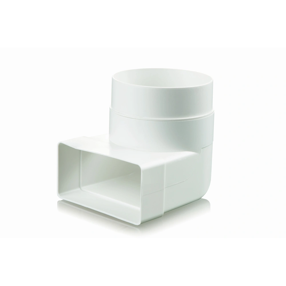 All product informationBend with spigot for supply and extract air in residential buildings and offices. The elbow is suitable for connecting ventilation hoods, cooker hoods and other components to the ventilation system and enables the connection of flat ducts to round ducts. The smooth inner surface ensures low resistance and an almost silent operation.