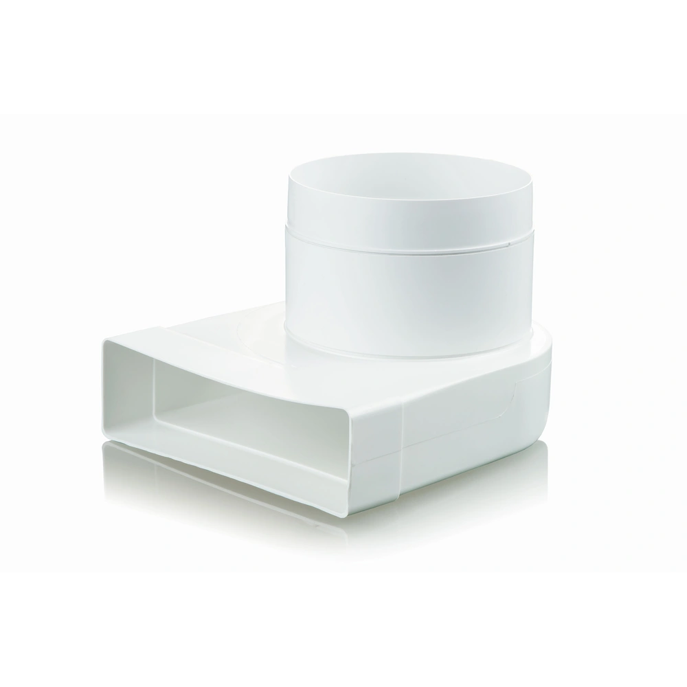All product informationBend with spigot for supply and extract air in residential buildings and offices. The elbow is suitable for connecting ventilation hoods, cooker hoods and other components to the ventilation system and enables the connection of flat ducts to round ducts. The smooth inner surface ensures low resistance and an almost silent operation.