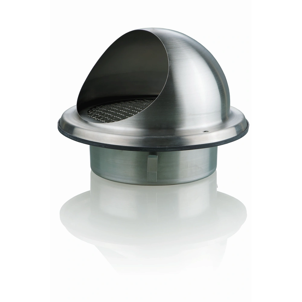 All product informationMetal ventilation hood with grille to protect against birds and rodents for covering ventilation shaft vents on round ventilation ducts.
