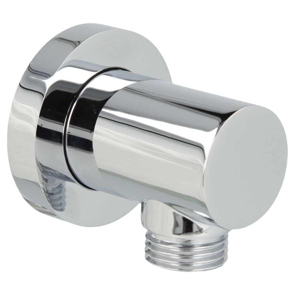 The wall connection elbow Style is made of solid brass, chrome-plated. It is equipped with a ½" connection and required for example in combination with flush-mounted fittings.