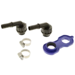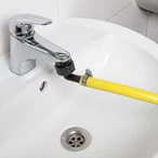 Tap adaptor kit with aerator wrench for the connection of water hoses to bathroom fittings. Ideal for flushings, drain cleaning or in case no tap connection is available.