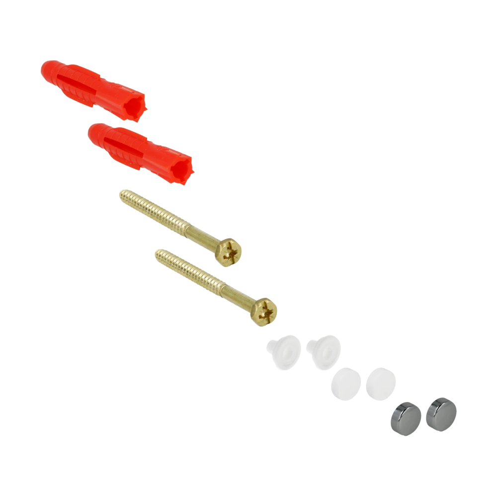 Fixing kit with white and chrome-plated protective caps for floor-standing WCs.