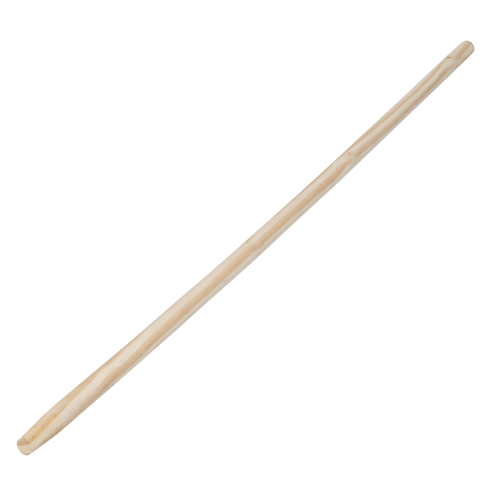 Sturdy broomstick made of untreated wood with round head and without thread.