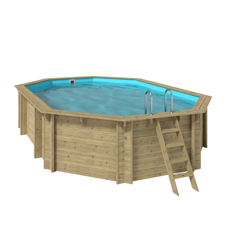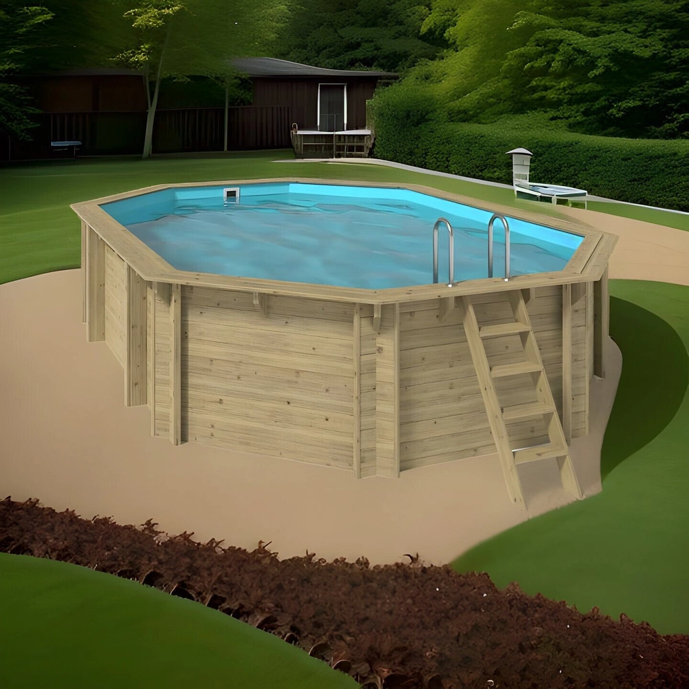 Wooden pool assembly kit made of robust pine wood for long-lasting swimming fun.