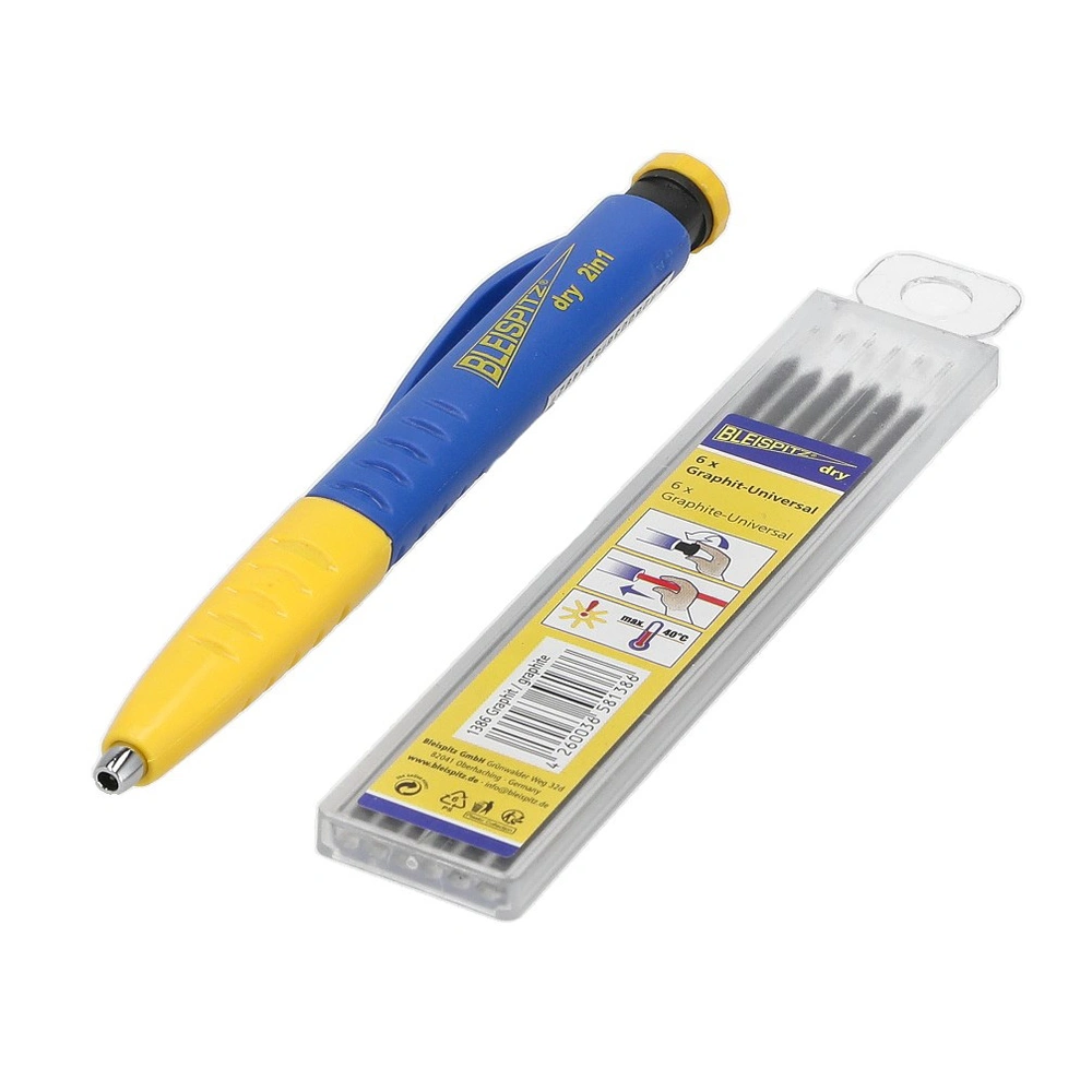 Toutes les informations sur le produit FournituresCombinaison d'un marqueur à trous profonds et d'un crayon classique. Le marqueur possède un capuchon amovible qui transforme le porte-mine en marqueur pour trous profonds. La mine universelle en graphite peut être facilement remplacée après usage et renouvelée grâce au taille-crayon intégré.