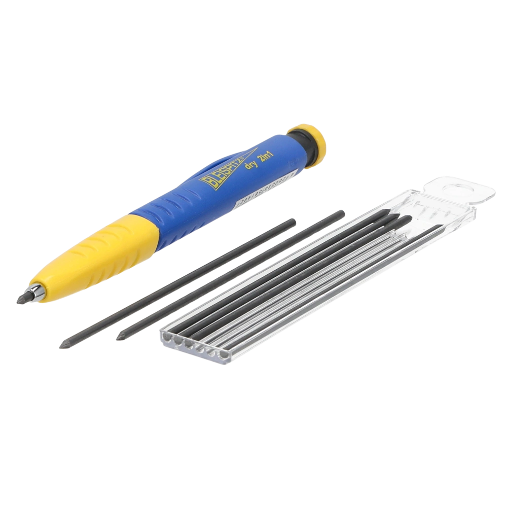 Combinaison d'un marqueur à trous profonds et d'un crayon classique. Le marqueur possède un capuchon amovible qui transforme le porte-mine en marqueur pour trous profonds. La mine universelle...