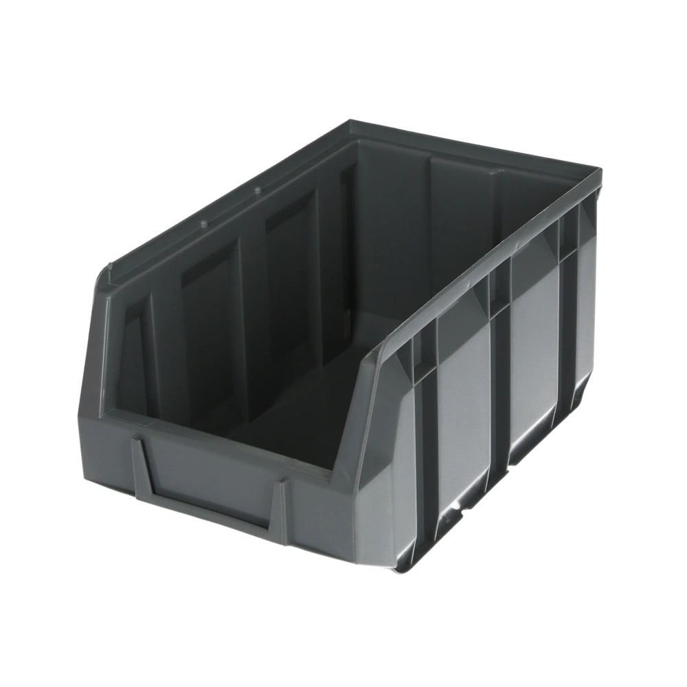Bac à bec empilable pour le rangement et le stockage. La boîte incassable est résistante aux graisses, aux huiles et à la plupart des solvants organiques.