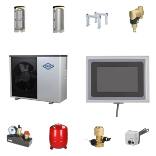 Voor een opgewarmde opslagtank: 1500 liter Ballon d'eau fraîche 1500 L, voor meer comfort: 2250 liter Ballon d'eau fraîche 2250 litres. Een geschikt circulatiesysteem met retourstroom wordt aanbevolen.
