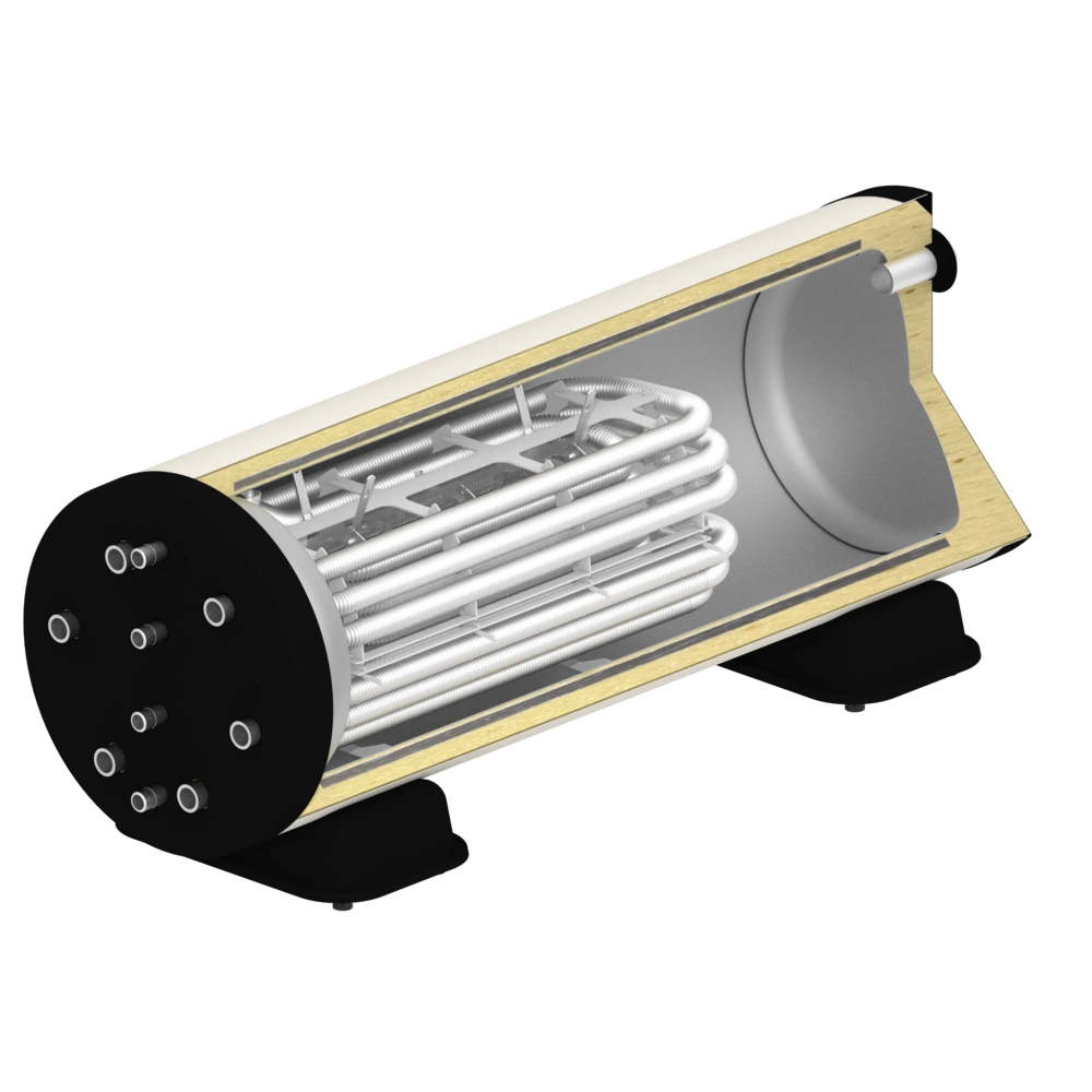 Is er ook een drinkwater i.p.v. installatiewater liggende boiler verkrijgbaar met 1 of 2 spiralen t.b.v. warmtepomp en solar ?