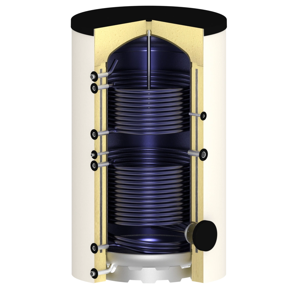Hallo, wie Hoch und Breit ist der Speicher mit Isolierung. Solarspeicher 300 l mit 2 Glattrohrwärmetauschern