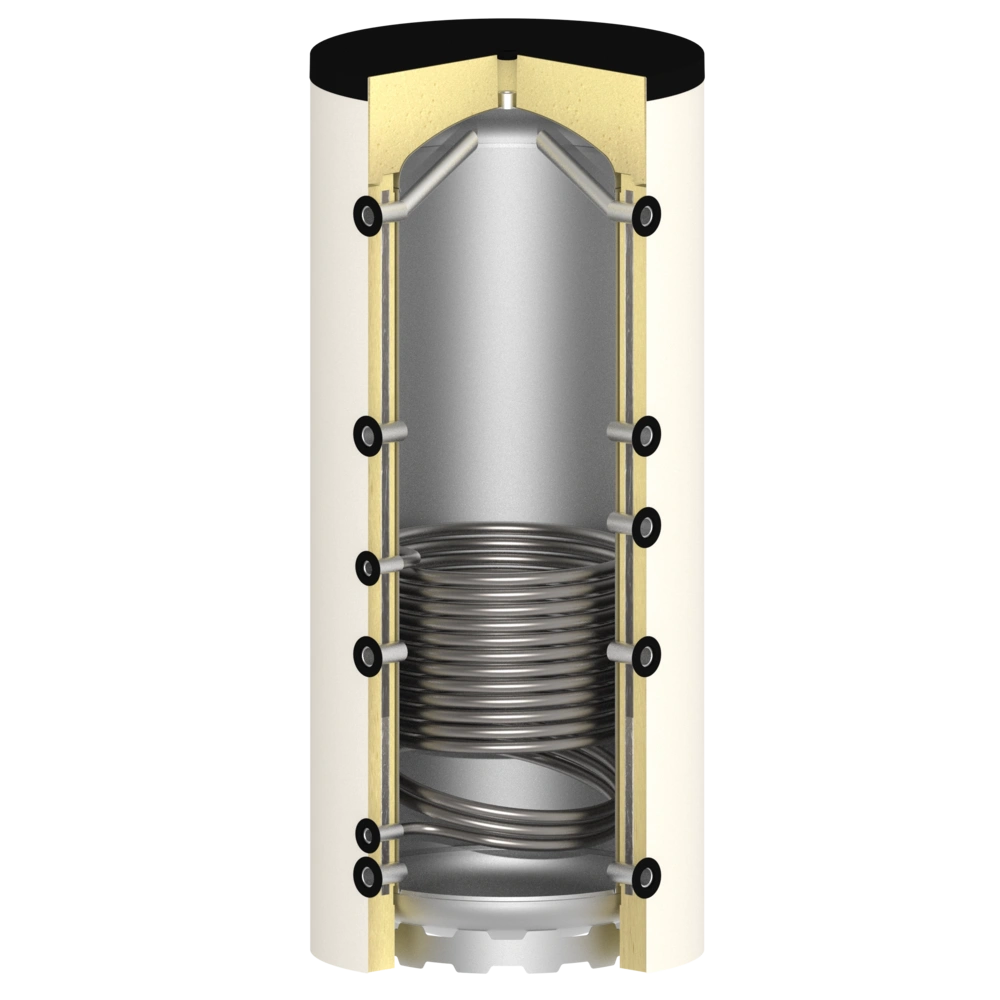 Le ballon tampon OEG convient comme accumulateur de charge pour le solaire, les pompes à chaleur, les chaudières à bois et à pellets et peut également être utilisé pour le chauffage urbain. Grâce aux deux échangeurs de chaleur à tubes lisses supplémentaires, il est possible d'intégrer d'autres générateurs de chaleur et d'injecter leur énergie en plus dans le ballon tampon.