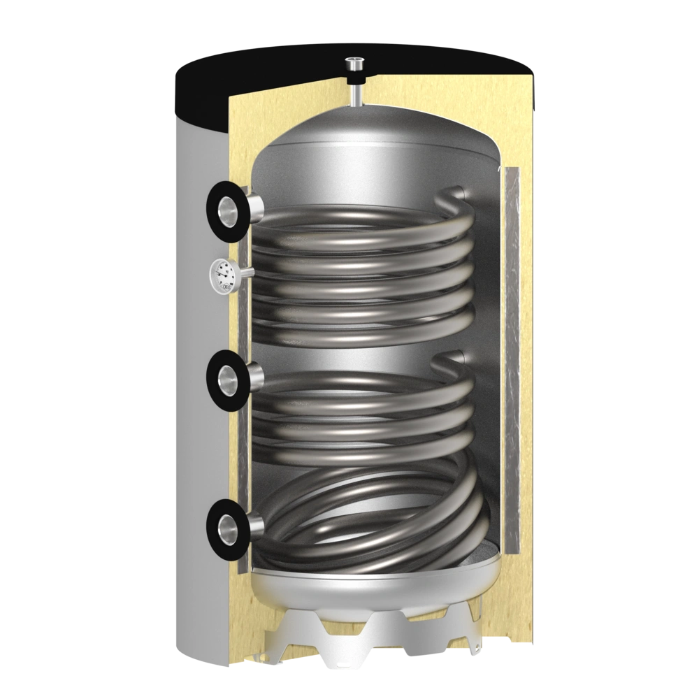 Le ballon tampon OEG convient comme accumulateur de charge pour le solaire, les pompes à chaleur, les chaudières à bois et à pellets et peut également être utilisé pour le chauffage urbain. Grâce aux deux échangeurs de chaleur à tubes lisses supplémentaires, il est possible d'intégrer d'autres générateurs de chaleur et d'injecter leur énergie en plus dans le ballon tampon.