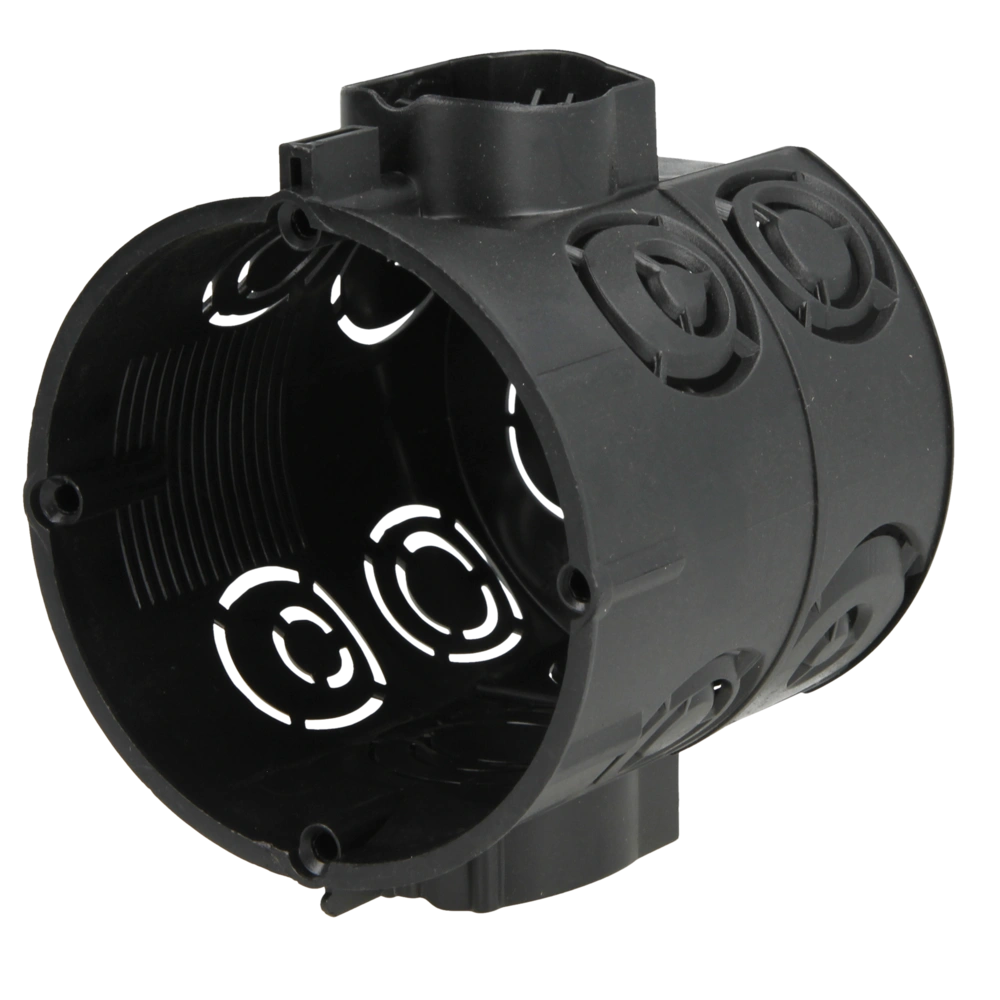 La boîte d'encastrement dispose d'un espace de raccordement supplémentaire qui permet de transformer la boîte d'encastrement en une boîte de jonction. Les supports combinés pour M20 et M25 permettent de tirer sans effort des câbles et des tubes de montage jusqu'à un diamètre de 25 mm. La boîte d'encastrement se convertit facilement grâce aux entretoises de supports de tunnel en une boîte multifonction.