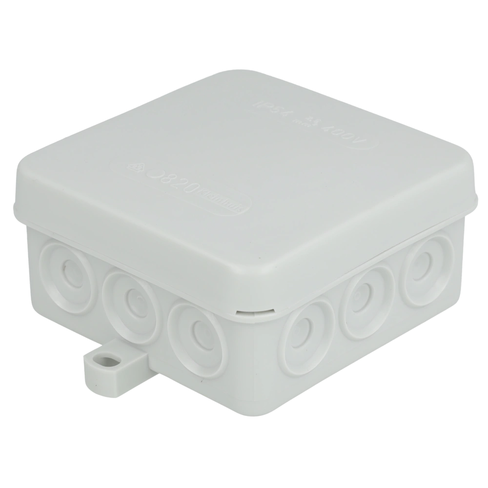 La boîte de dérivation pour pièces humides est équipée d'un couvercle et comporte 12 entrées. Elle convient pour des diamètres de câble de 8 à 12,5 mm.