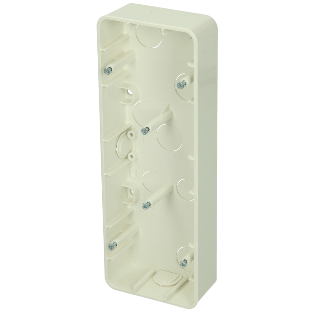 Toutes les informations sur le produitBoîtier triple apparent en thermoplastique incassable avec vis de fixation pour appareils et entrée de câbles pour une installation verticale et horizontale.