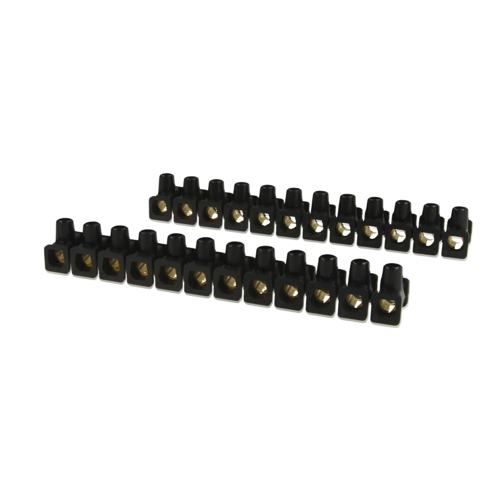 Bornes de connexion dans un bornier à 12 pôles avec une partie isolante en polyamide sans halogène. Les pôles individuels sont facilement détachables.