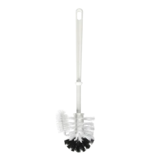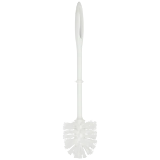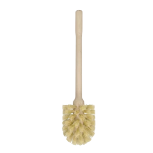 Brosses WC à tête ronde en bois ou en plastique. Poils en fibres naturelles ou en plastique.