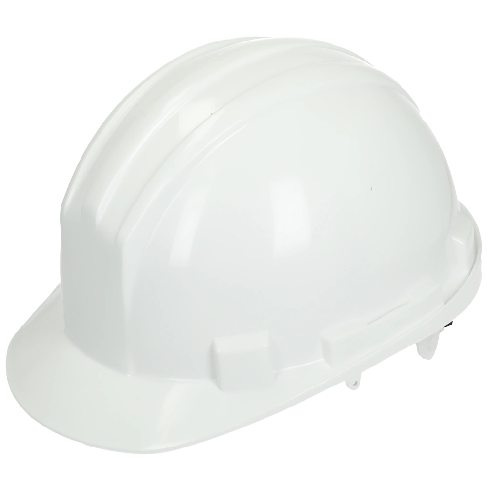 Le casque de sécurité en matière synthétique avec gouttière de pluie a une fermeture à 6 points avec des sangles textiles très résistantes à la déchirure. Le siège du casque peut être facilement et continuellement ajusté à l'aide d'une vis de blocage.