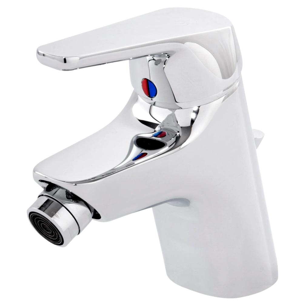 Mitigeur de bidet monocommandé pour un montage monotrou avec garniture de vidage à tirette. l'armature possède une cartouche CLICK de 40 mm avec des joints céramiques, un contrôle intégré...