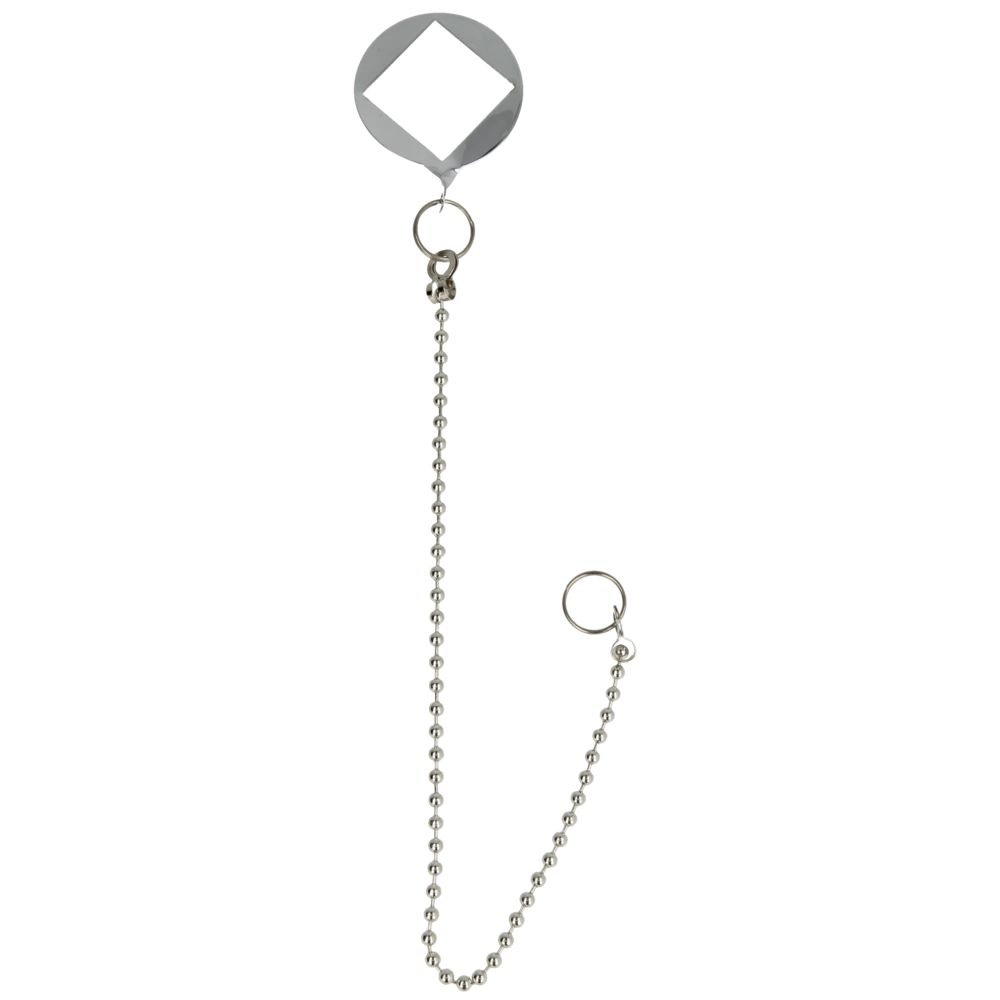 Chaînette chromée 30 cm pour robinets simple avec disque de robinet à pied et une bague à goupille fendue.